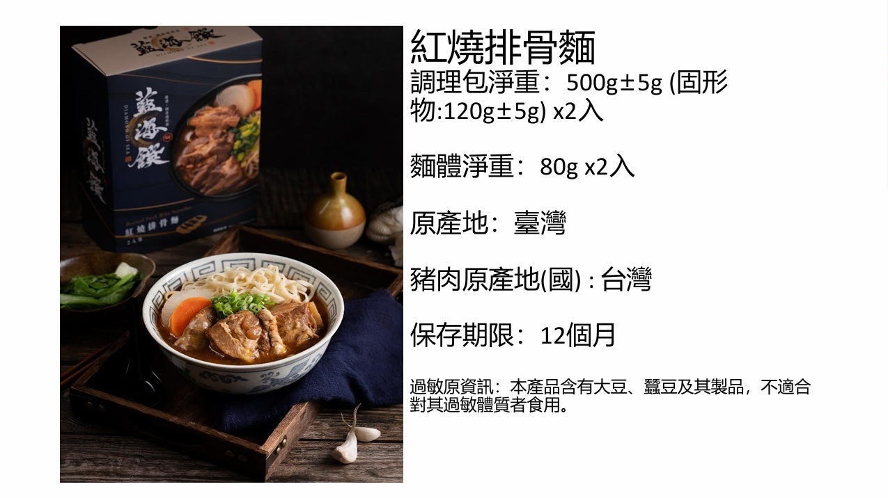 【預售】藍海饌 紅燒排骨麵 (2入)(約10月中出貨)